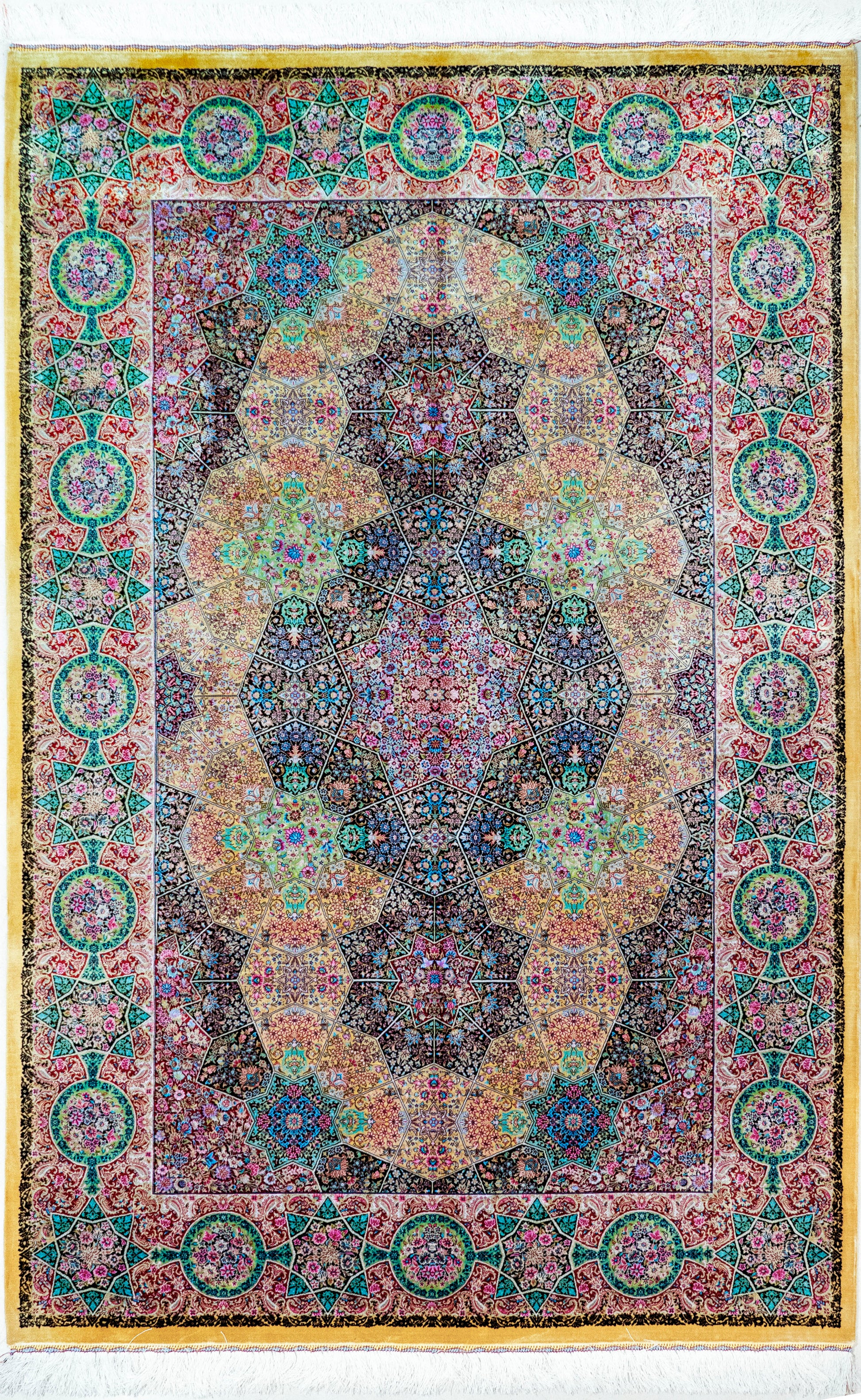 This magnificent 1.5 x 2-meter Yellow Silk Qum Rug is a radiant blend of artistry and luxury, designed to elevate any space with its vibrant charm. Handcrafted with exceptional skill, the rug features a rich yellow palette that exudes warmth and positivity, making it a striking focal point in any room. The intricate patterns, inspired by traditional Persian motifs, are meticulously woven into the silk, showcasing the unparalleled craftsmanship of Qum rug artisans. The silk material adds a lustrous sheen, enhancing the rug's vibrant tones and creating a sense of depth and texture. Perfect for brightening up living rooms, dining areas, or bedrooms, this rug is not only a visual masterpiece but also a timeless investment in elegance and cultural heritage. Its bold yet refined design ensures it pairs beautifully with both contemporary and classic decor styles.